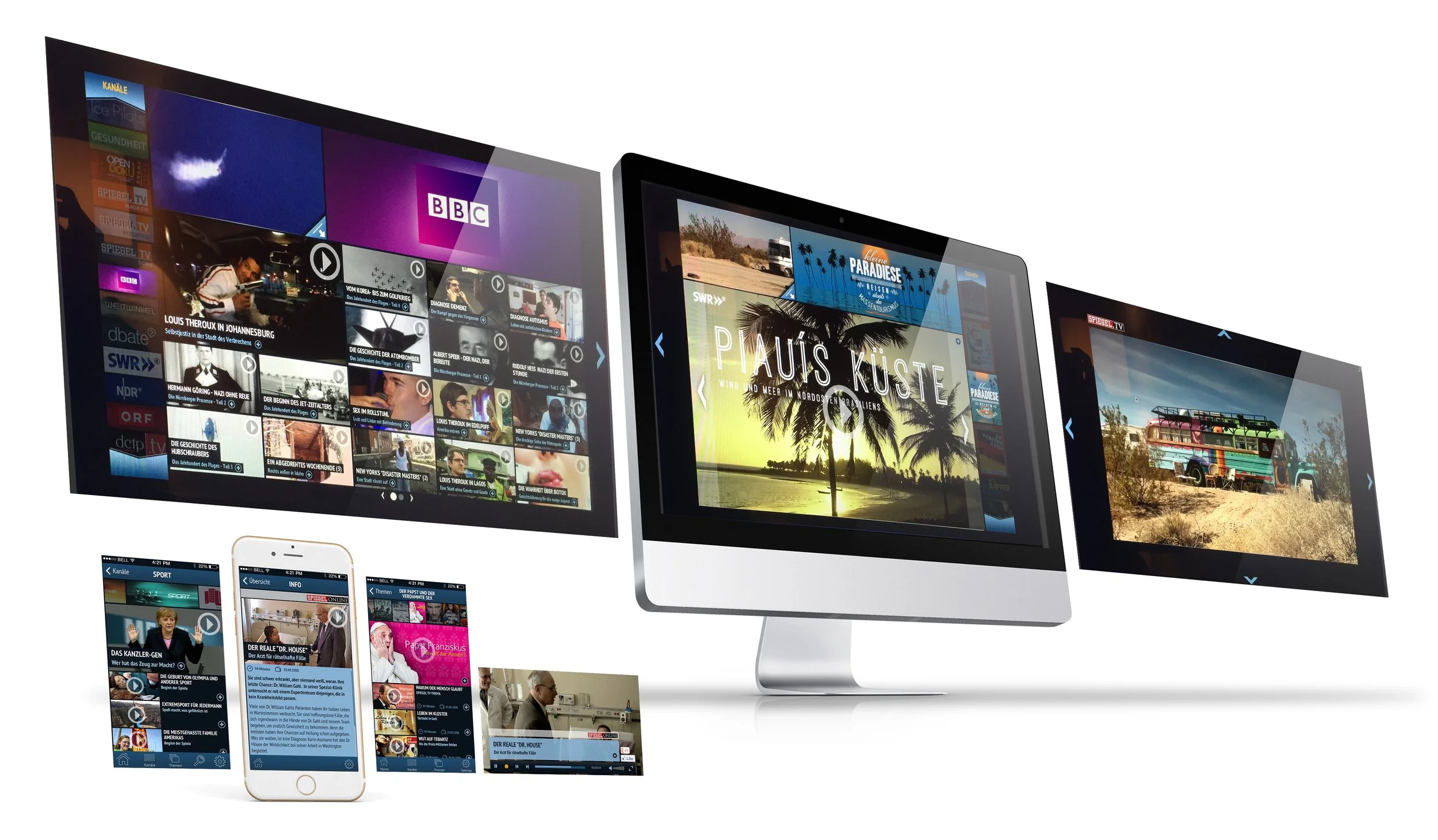 Streaming steckte noch in den Kinderschuhen, doch SPIEGEL TV wollte bereits eine Website, die den Nutzer:innen ermöglichte, das gesamte Programm zu erleben und einfach zu navigieren. Die Seite präsentierte hochwertige Dokumentationen, Reportagen und Magazine für nationale und internationale Fernsehsender – modern aufbereitet, mit dramaturgischem Fokus und ansprechender Optik. Ich gestaltete die Website sowohl bei der ersten Version ab 2011 als auch beim Relaunch 2014.