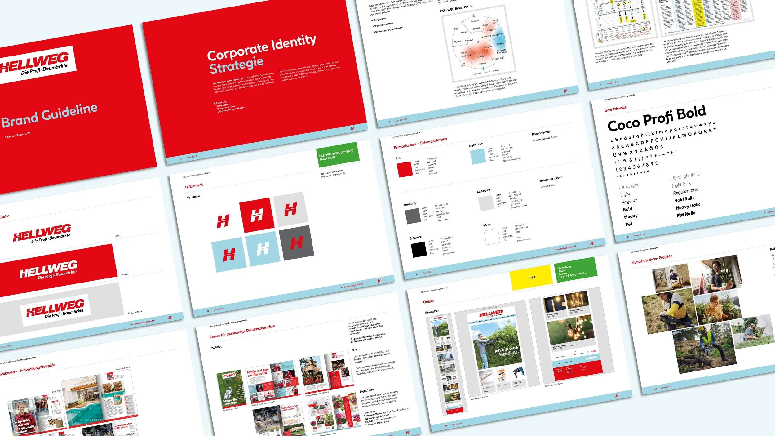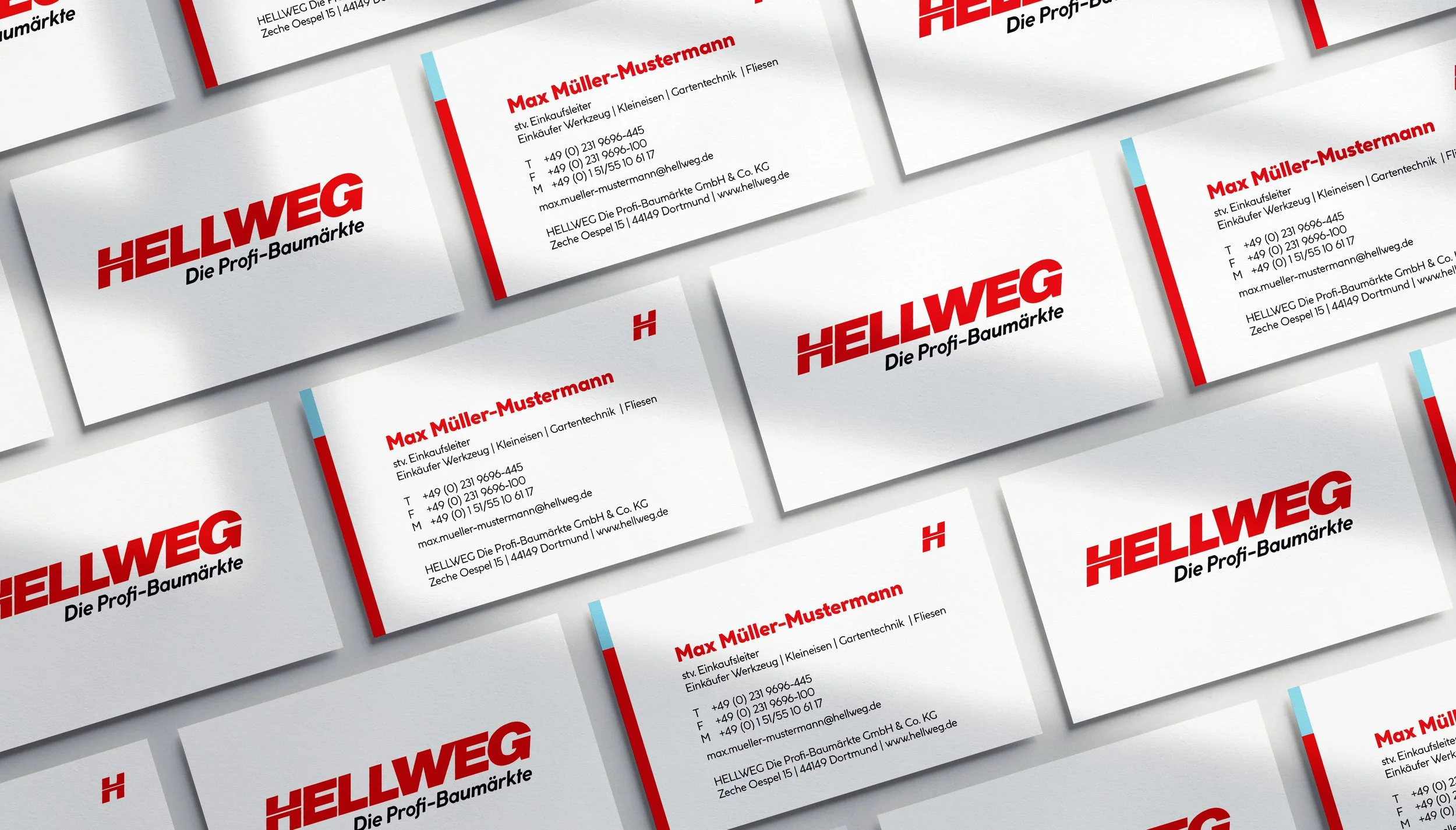 Aufgabe war es, die Corporate Identity von HELLWEG, die Profi-Baumärkte, zu überarbeiten und die Markenpositionierung im Wettbewerb neu zu definieren. Dabei lag der Fokus darauf, die bestehende Identität zu modernisieren, ohne die Wiedererkennbarkeit zu verlieren.
