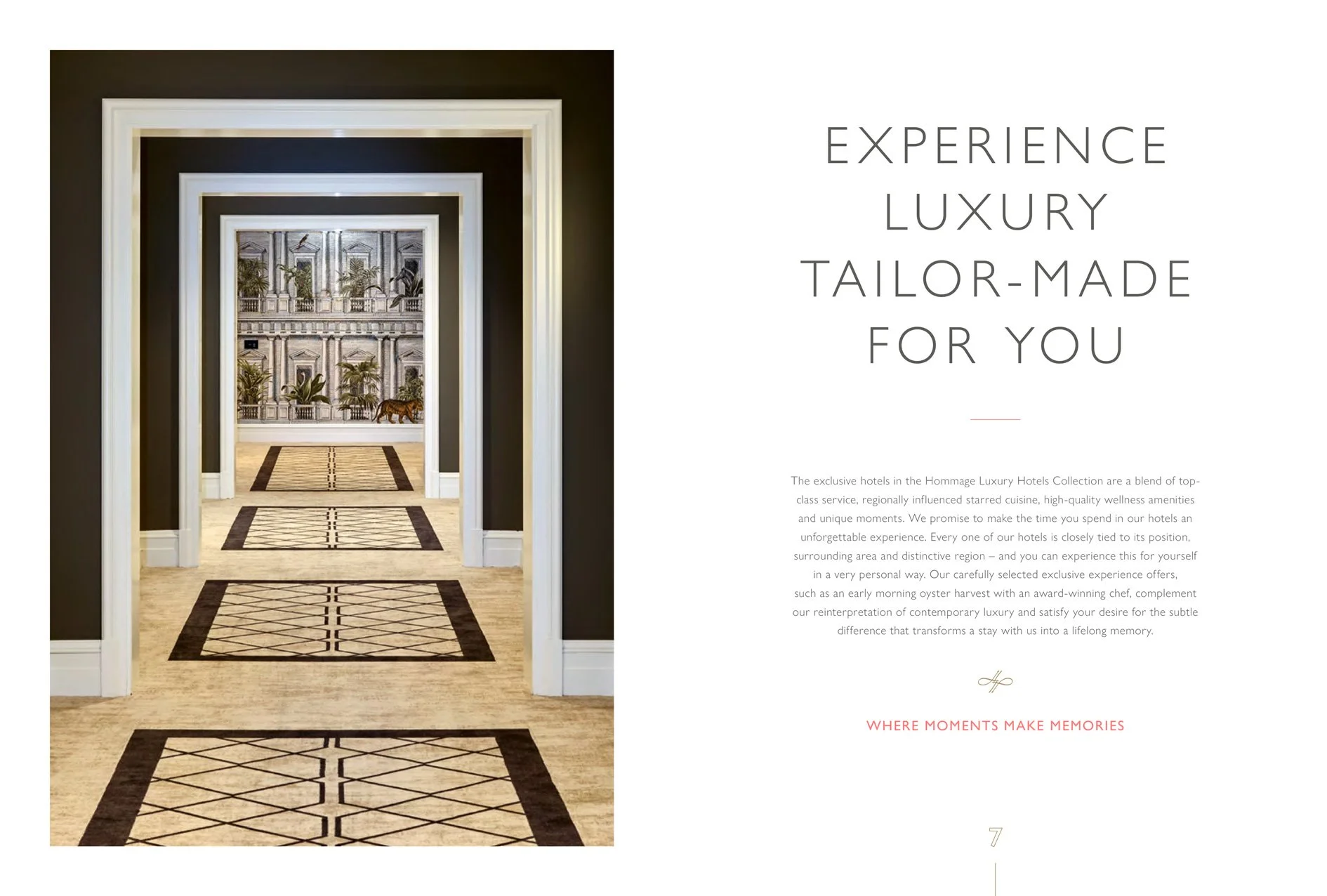 Im Laufe der Jahre habe ich für die Hommage Luxury Hotels Collection zahlreiche Broschüren erstellt, darunter Investoren-, Hochzeitsbroschüren sowie Spa- und Weihnachtsangebote – oft in drei Sprachen (Deutsch, Englisch, Arabisch). Die vorgestellte Imagebroschüre zeigt diese Vielfalt. Trotz der digitalen Welt bleibt Print wichtig: Es schafft eine besondere Haptik, vermittelt Professionalität und stärkt die Verbindung zur Zielgruppe – besonders in der Luxushotellerie.