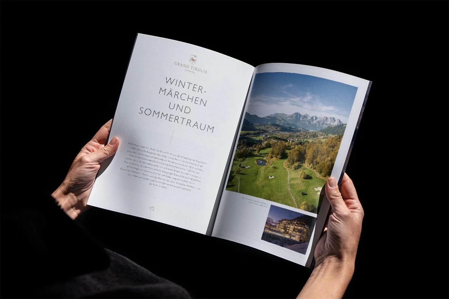 Die Sommer- und Winterzeitung, die zweimal jährlich erscheint, hat sich von einem werblichen Medium für Gäste zu einem hochwertigen Magazin entwickelt. Wir entwickeln das inhaltliche Konzept und den Seitenaufbau Hand in Hand und stellen einen bunten Mix aus saisonalen, destinationsbezogenen und hotelspezifischen Inhalten zusammen, die wir mit dem Kunden abstimmen. Interviews und Mitarbeitervorstellungen machen die Zeitung auch für das Hotelpersonal interessant.